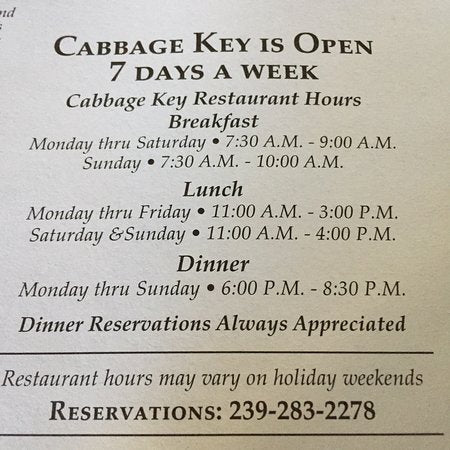 The other option would be to have lunch or dinner at Cabbage Key. The only way to get to Cabbage Key Island is by boat, ferry, water taxi, or seaplane.